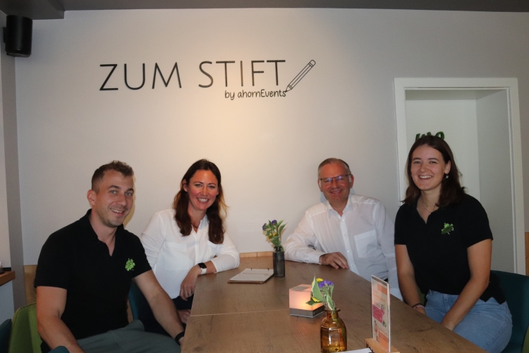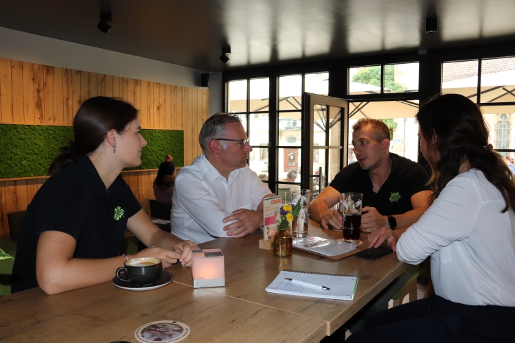 Anschließend stellte Aico Horn, Veranstaltungsmanager und Inhaber, der Landtagskandidatin Diana Arnold und mir im Café „Zum Stift“ in Rottenburg sein neues Gastro-Konzept und innovatives Azubi-System vor. Im Café packen die Auszubildenden nicht nur kräftig mit an, sondern sie arbeiten von Anfang an auch hinter den Kulissen mit, übernehmen die Planung, erstellen Dienstpläne, schreiben Rechnungen etc. und lernen so viel schneller. Clara Neumeyer, Auszubildende im 1. Lehrjahr zur Veranstaltungskauffrau, berichtete von ihrer Arbeit. Das „Zum Stift“ wird sehr gut angenommen. Neben Touristen und After Work Gästen kehrt auch der Gemeinderat regelmäßig ein. In Horns drei Betrieben (er betreibt auch das „Restaurant Hofgut“ in Bondorf und das „Haus der Bürgerwache“ in Rottenburg am Neckar) arbeiten 120 Mitarbeiter aus ca. 20 Nationen. Horn hilft und unterstützt sie, wo es geht. Seine Kritik brachte er kurz und knapp auf den Punkt: „Eigentlich bin ich Gastronom, weil ich gerne Gäste begrüße.“ Doch der bürokratische Aufwand sei enorm und bei Rückfragen könne man niemanden persönlich erreichen. Ich war beeindruckt und halte dieses Konzept für einen sehr vielversprechenden Ansatz.